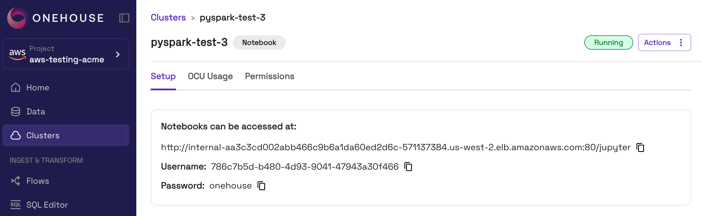 - You may run into occasional "Spawn failed" errors in the Jupyter UI. If this occurs, you should sign out and sign back in with the credentials from the Cluster page in the Onehouse console.