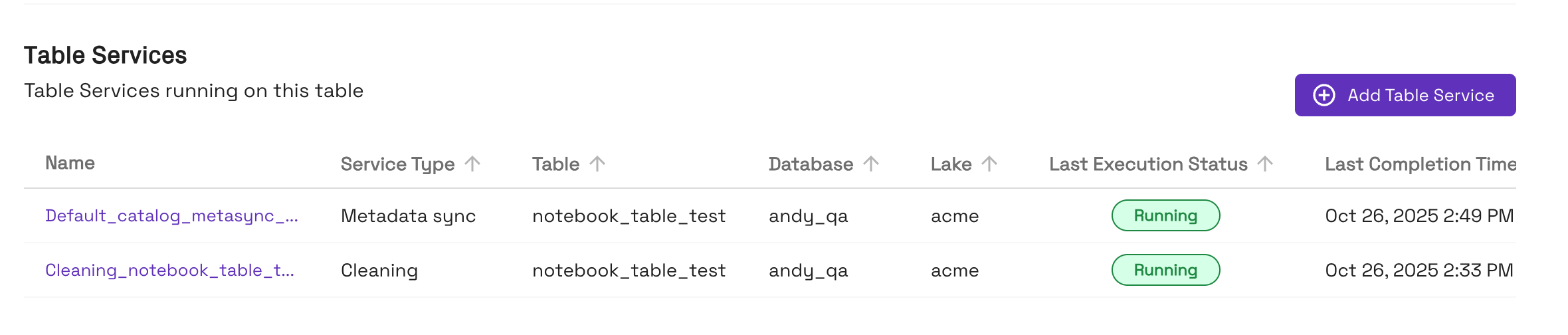- Tables created with the Onehouse catalog will automatically have table services enabled: